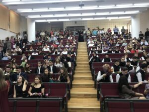 Cei 80 de elevi din clasele de teologie și filologie, îmbrăcați în ținută de sărbătoare și reprezentați cu cinste de șefii de promoție au trăit bucuria și emoția bilanțului celor patru ani de liceu.